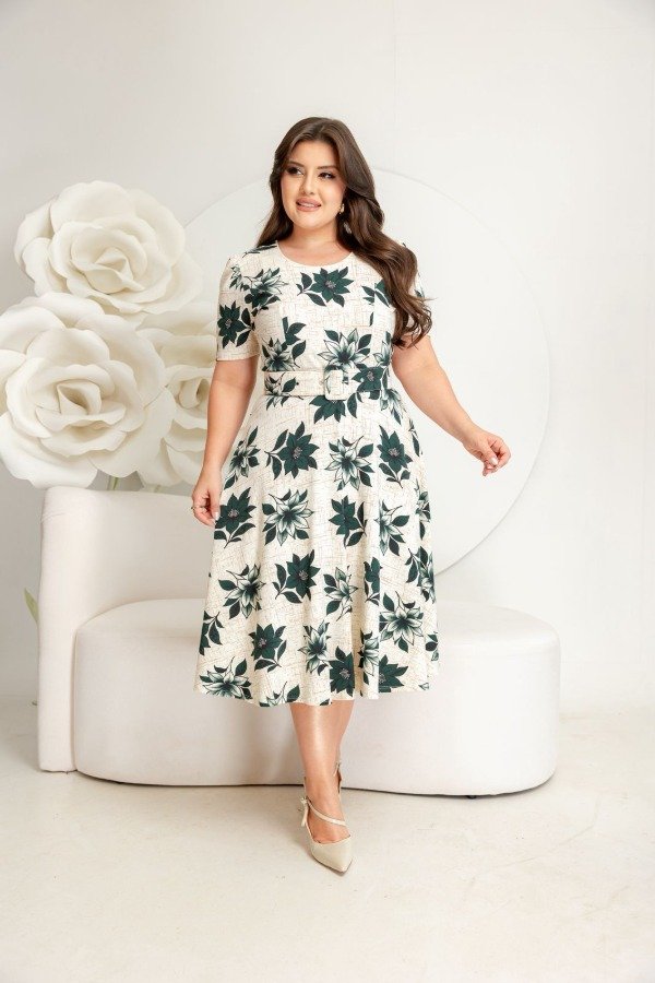 Vestido con cinto estampado con VERDE (Art. 273) Talles M, L y XL